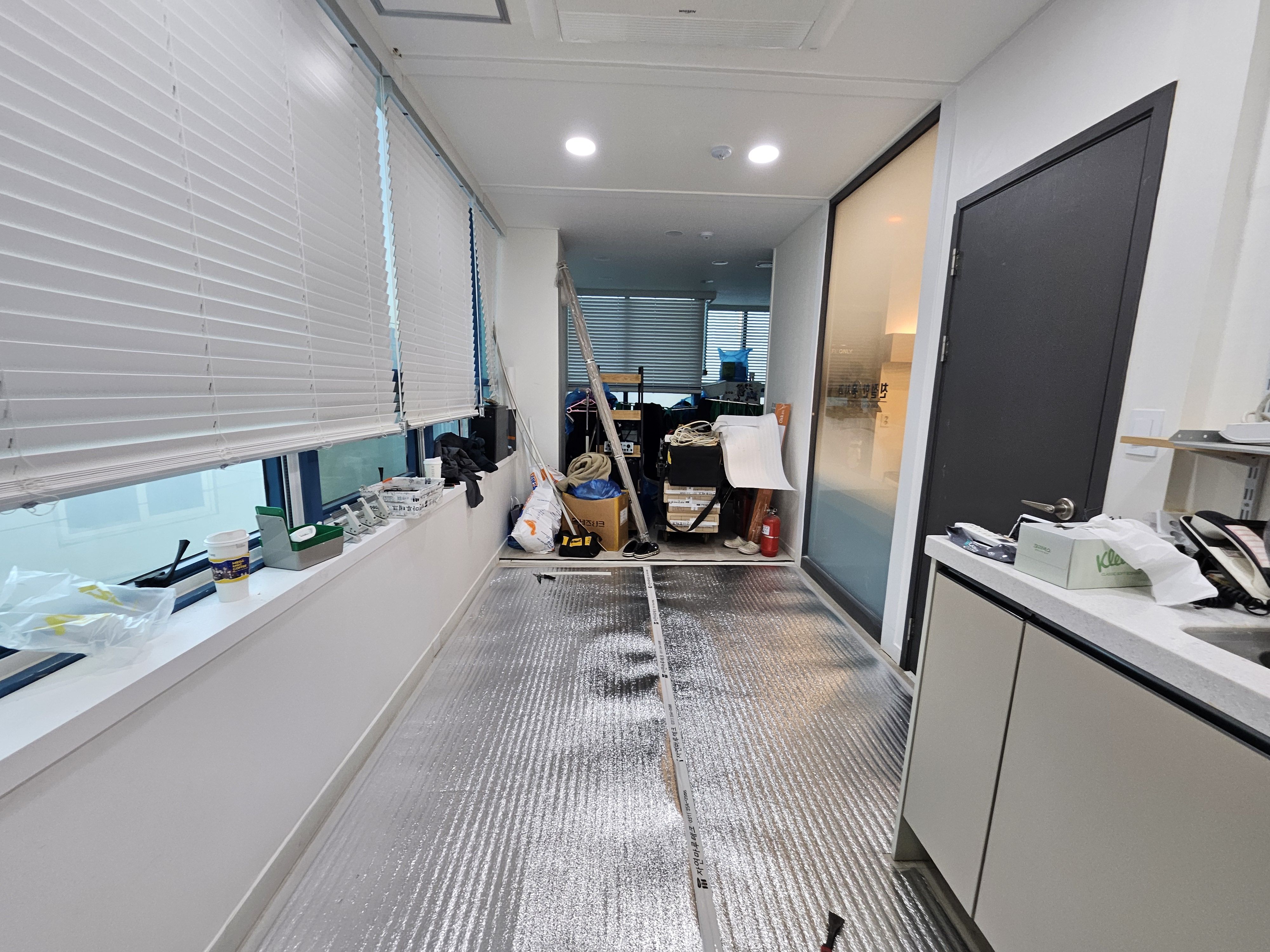 기존 바닥은 난방 설비가 전혀 없는 상태여서 휴게실 특성상 맨발로 다니는 공간이어서 겨울철 발시림이 가장 문제였다고 하셨습니다.