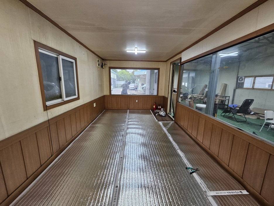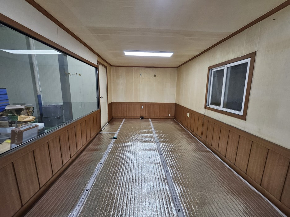 인천 광림자동차공업사 끝쪽에 위치한 직원 휴게용 컨테이너 내부에 전기온돌 강화마루 시공을 진행한 현장을 소개해드리겠습니다.